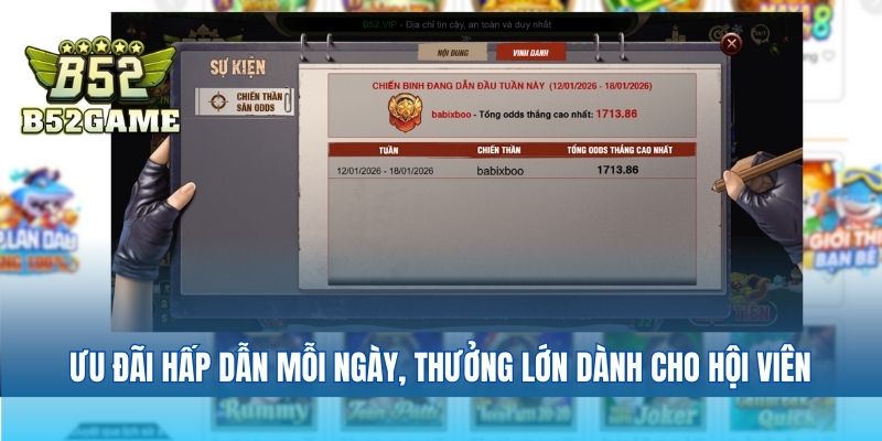 Đối với anh em gắn bó lâu năm, hệ thống khuyến mãi B52club liên tục được обнов mới như hoàn trả cược, thưởng nạp định kỳ, quà sinh nhật và sự kiện tri ân. Nhờ chính sách ưu đãi minh bạch, cập nhật thường xuyên, B52club luôn mang lại trải nghiệm giải trí hấp dẫn và bền vững cho mọi người chơi.