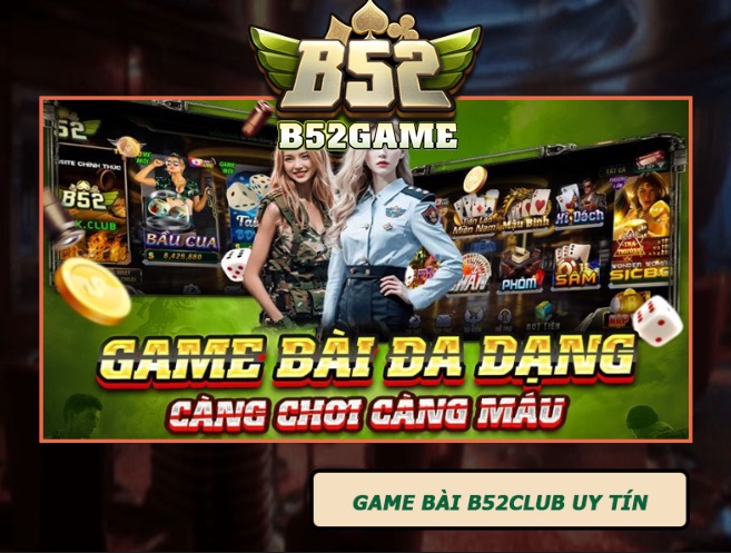 - B52 cung cấp rất nhiều tựa game bài phổ biến và mô phỏng sòng bài thực tế như: Tiến lên miền Nam, Phỏm (Tá lả), Mậu binh, Xóc đĩa (Tài Xỉu), Poker, Baccarat…